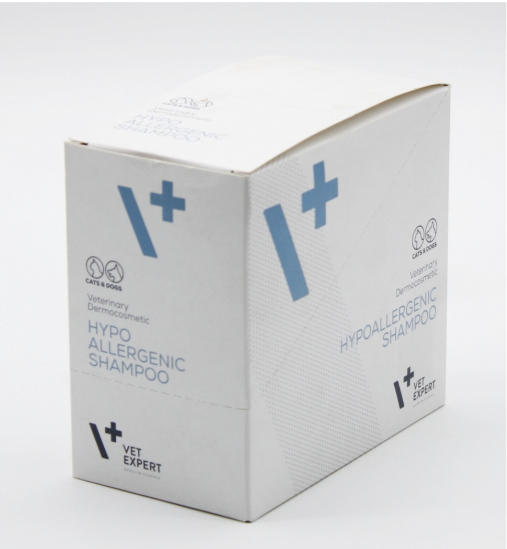 Vet Expert Hypoallergenic Shampoo (Вет Эксперт Шампунь гипоаллергенный) - кожно-косметический шампунь для животных с чувствительной кожей, склонной к раздражению, аллергии, чрезмерной сухости или непереносимости других шампуней. Безопасен для растущих животных. Преимущества. - Изготовлен из натуральных ингредиентов. - Не содержит силикона и искусственных ароматизаторов. - Содержит мягкие поверхностно-активные вещества и смягчающие компоненты, чтобы не раздражать нежную кожу животных. - Повышает эластичность кожи, предотвращает ее сухость, оказывает увлажняющее и успокаивающее действие. - Алантоин восстанавливает кожу, стимулируя рост и деление клеток. - Содержит пантенол, который способствует регенерации и заживлению поврежденной кожи. - Очищает и разглаживает кожу, делает шерсть более мягкой и послушной, а также обладает антистатическими свойствами.