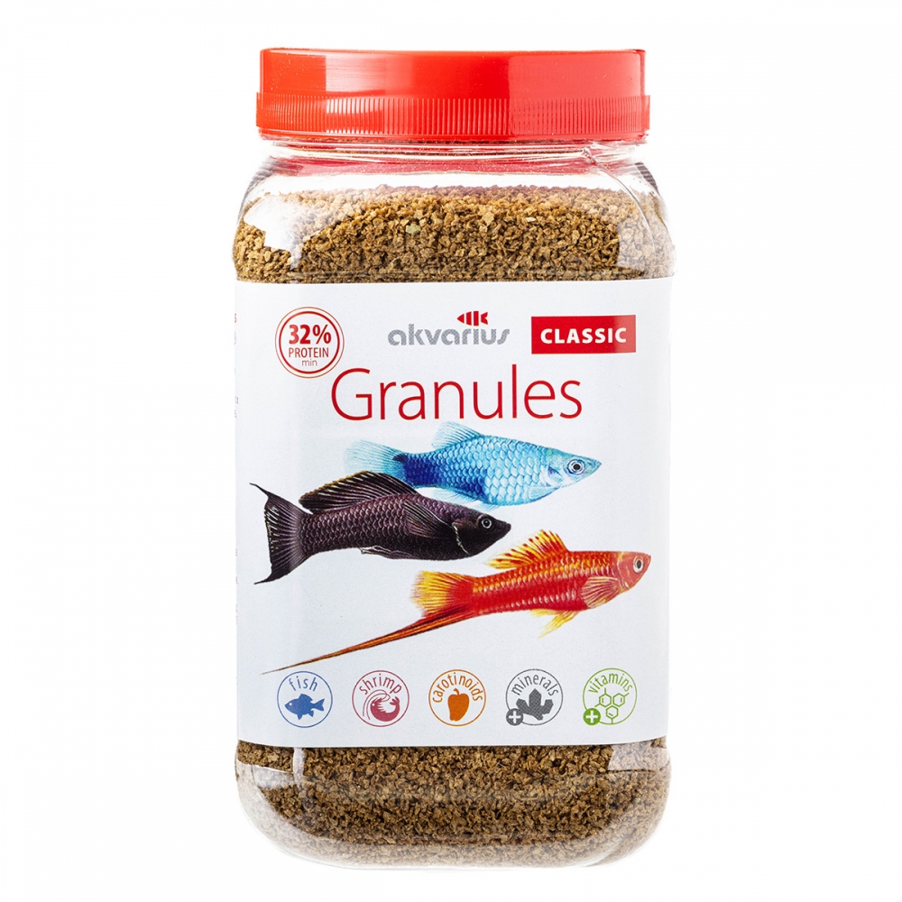 Аквариус Classic Menu Granules – базовый рацион, подходящий для молодняка и рыб небольшого размера, таких, как неоны, гуппи, данио-рерио.
