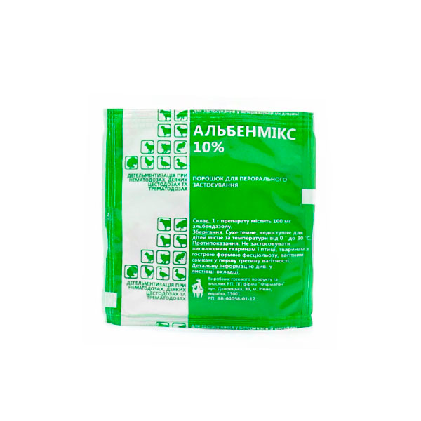 Альбенмикс - эффективный препарат для борьбы с гельминтами. Рекомендую его всем фермерам и владельцам животных!Мои домашние питомцы всегда проходят профилактику против паразитов с помощью Альбенмикса. Рекомендую!Альбенмикс - незаменимый препарат для лечения гельминтов у сельскохозяйственных животных. Рекомендую его всем фермерам!Способы доставки: доставка Укрпочтой, точка выдачи Rozetka, доставка Новой Почтой, доставка курьером по Киеву, доставка курьером по Днепру, самовывоз из магазина (Днепр/Киев).