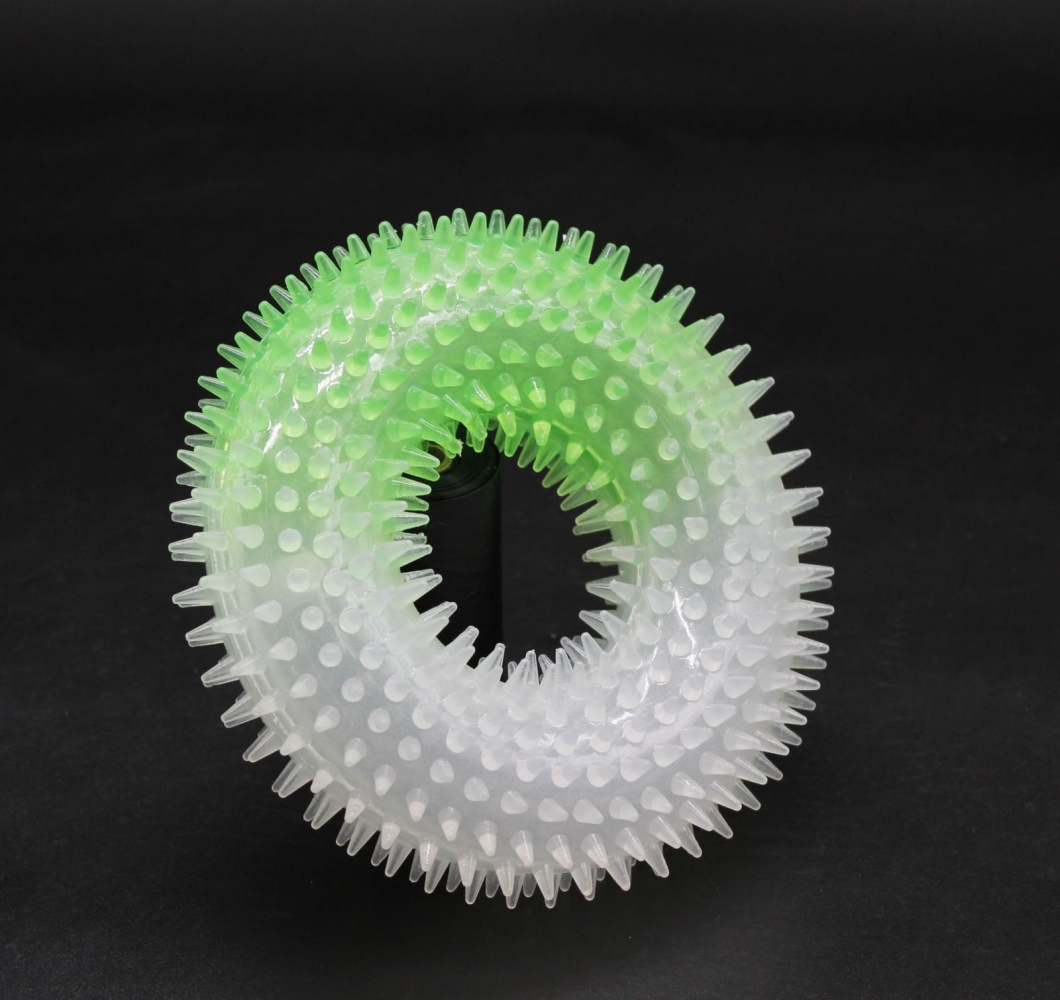 Игрушка кольцо с шипами для собак. Диаметр 13 см, цвет зеленый. Игрушка прочная на укус, предназначена для игр, поощрений, обучения, дрессировки собак. В процессе игры очищает зубы от налета и массирует десны. Использование такой игрушки положительно скажется на здоровье домашнего питомца.