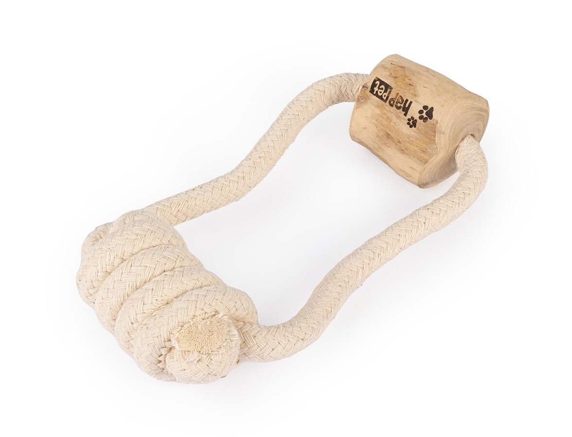 Игрушка Жевательная из кофейного дерева с хлопковым канатом