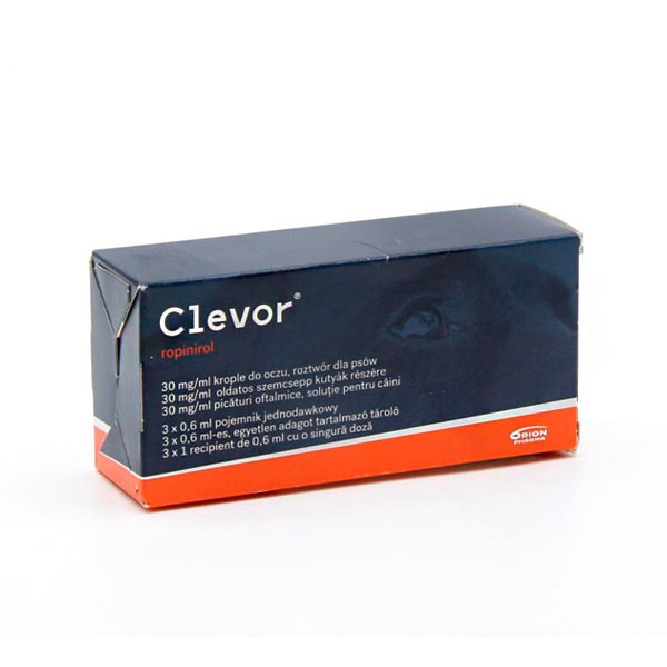- Глазные капли Клевор для вызывания рвоты у собак 1 пип. 30 мг/мл 0,6 мл.