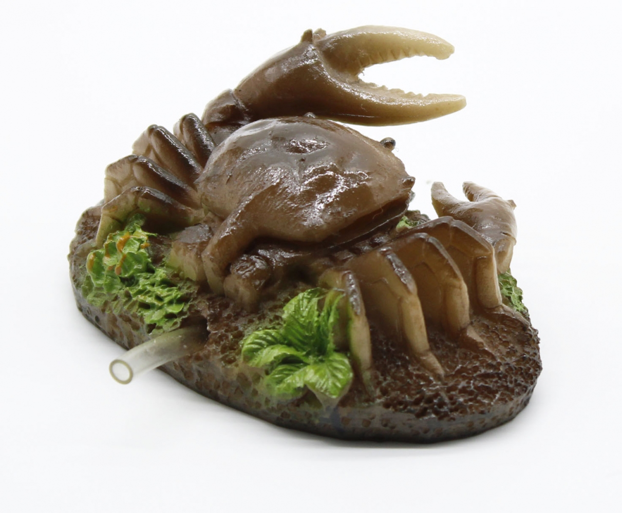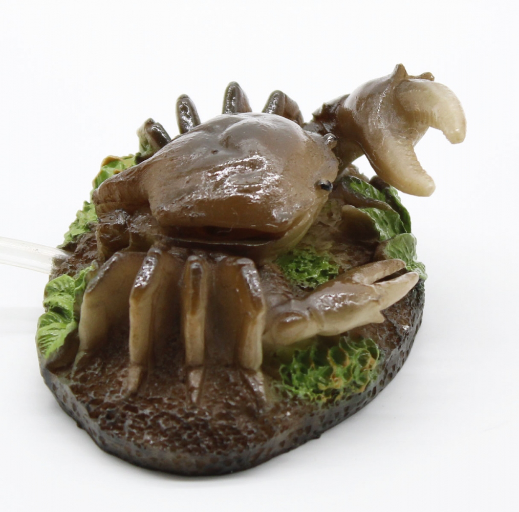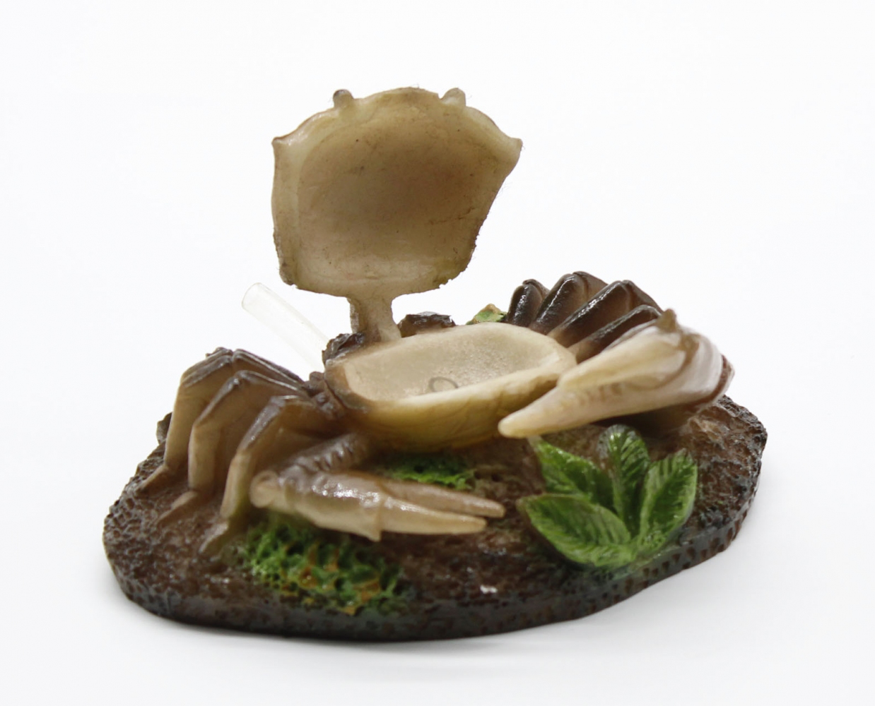 Краб мини 9×6×4 см / 9×6×3 см — оригинальная декорация для аквариума или террариума, выполненная из безопасной керамики. Оснащена подвижной верхней крышкой: при подключении компрессора через встроенную трубку поток воздуха поднимает крышку, создавая эффект движущегося крабика.