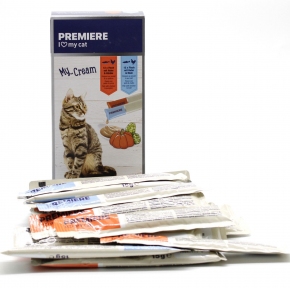 Premiere My Cream – вкусное сливочное лакомство для особых, замечательных моментов. Крем насыщен витаминами благодаря содержащимся в нем суперпродуктам и практичен в использовании благодаря готовым пакетикам. Чрезвычайно вкусная закуска для Вашего питомца - без добавления сахара, красителей и консервантов!