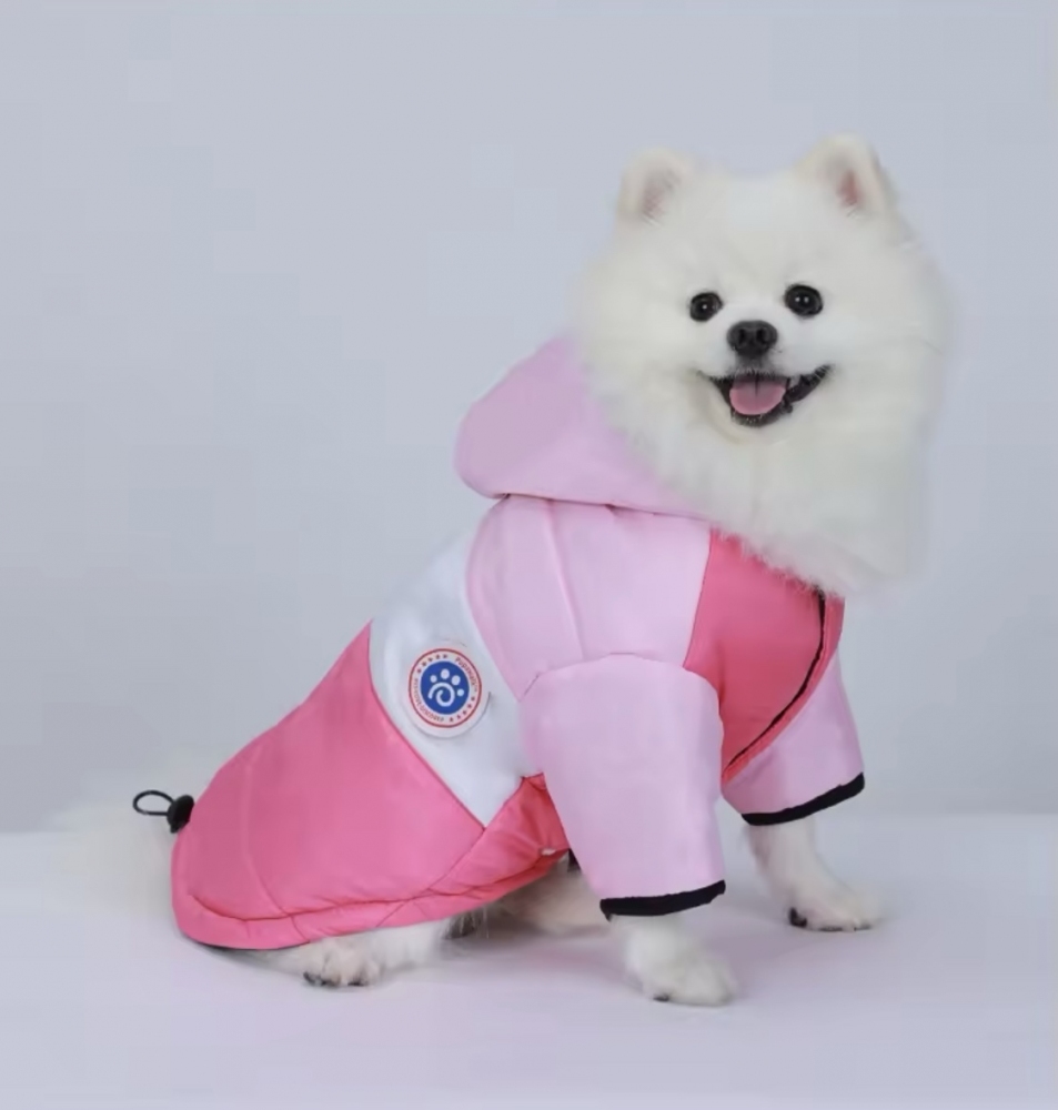 Стильная трехцветная куртка с современным дизайном, внутри утепленная синтепоном, на гладкой подкладке, застегивается на кнопки на животе, с капюшоном, отверстие для крепления поводка, на спине утяжка для регулировки талии. Для лучшей посадки по фигуре предусмотрена дополнительная кнопка на животе – можно застегнуть свободнее или плотнее.