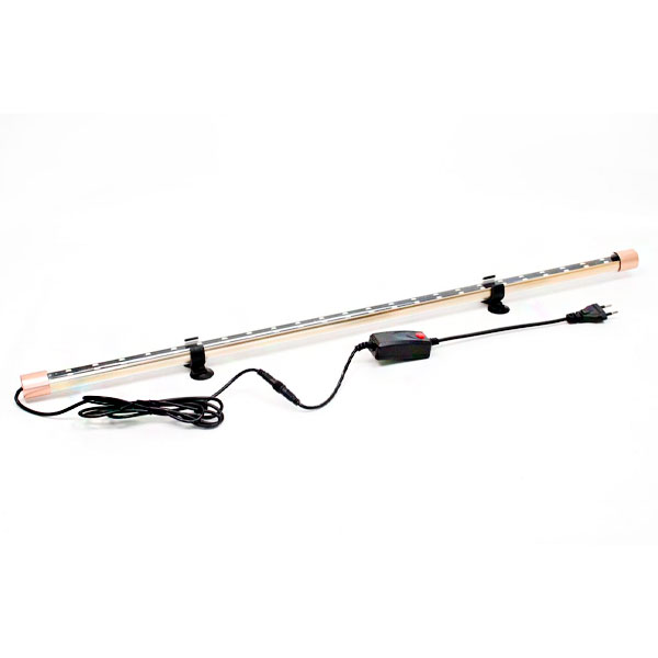 На кабеле длиной 2.21 м, предусмотрен блок управления лампой. При полном нажатии кнопки, лампа включается и выключается, при неполном нажатии, не до прищёлкивания, вы можете выбрать один из режимов освещения лампы. Корпус выполнен из прочного кварцевого стекла. Соединение кабеля от светильника к блоку переключения, выполняет при помощи соединения разъёмом XLR3, который надёжно закреплён сверху дополнительным уплотнением, для предотвращения вероятности возникновения случайного разъединения. С двух сторон лампы находятся крышки, которые предотвращают вероятность протекания воды, что способствует плотной и надёжной герметизации. Длина лампы составляет 76.5 см, диаметр окружности - 25 мм.- Долгий срок службы светодиодов.