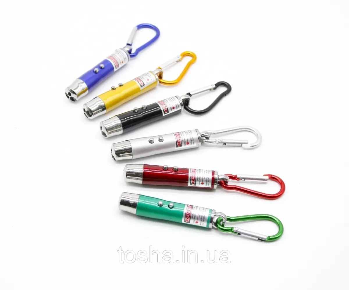 Брелок, кроме красного лазера, оснащен ярким белым светодиодом и ультрафиолетовым светодиодом. Лазер и фонарь включаются и выключаются независимо друг от друга.