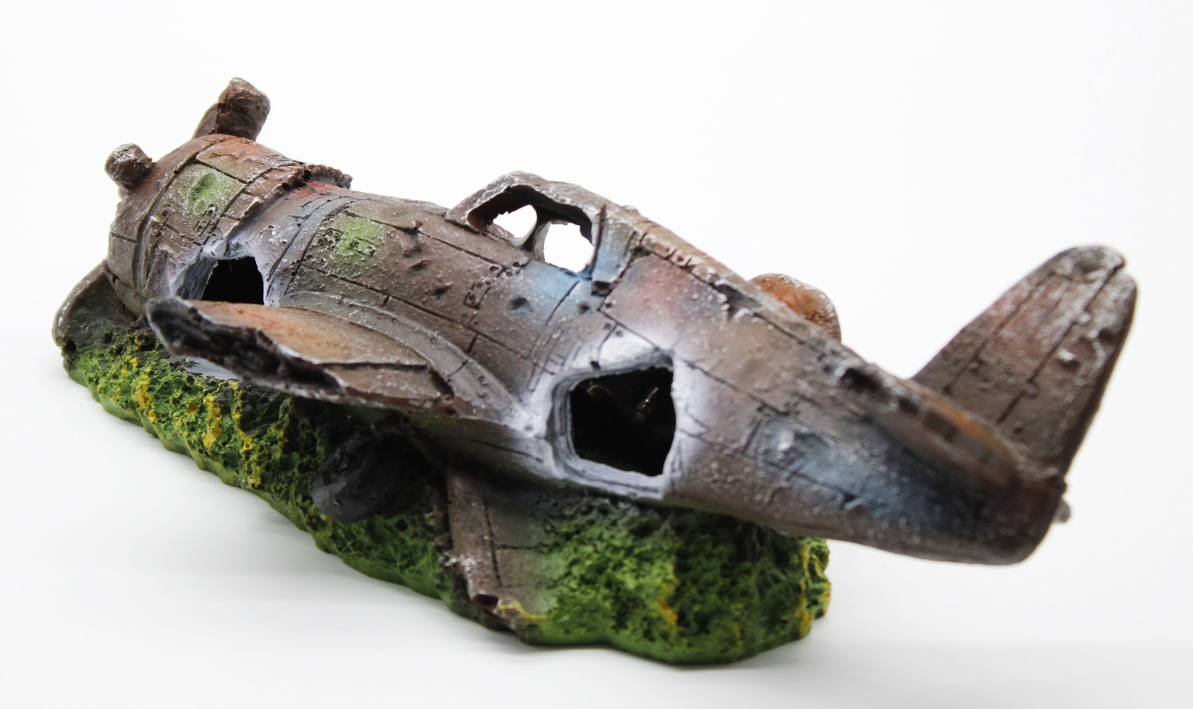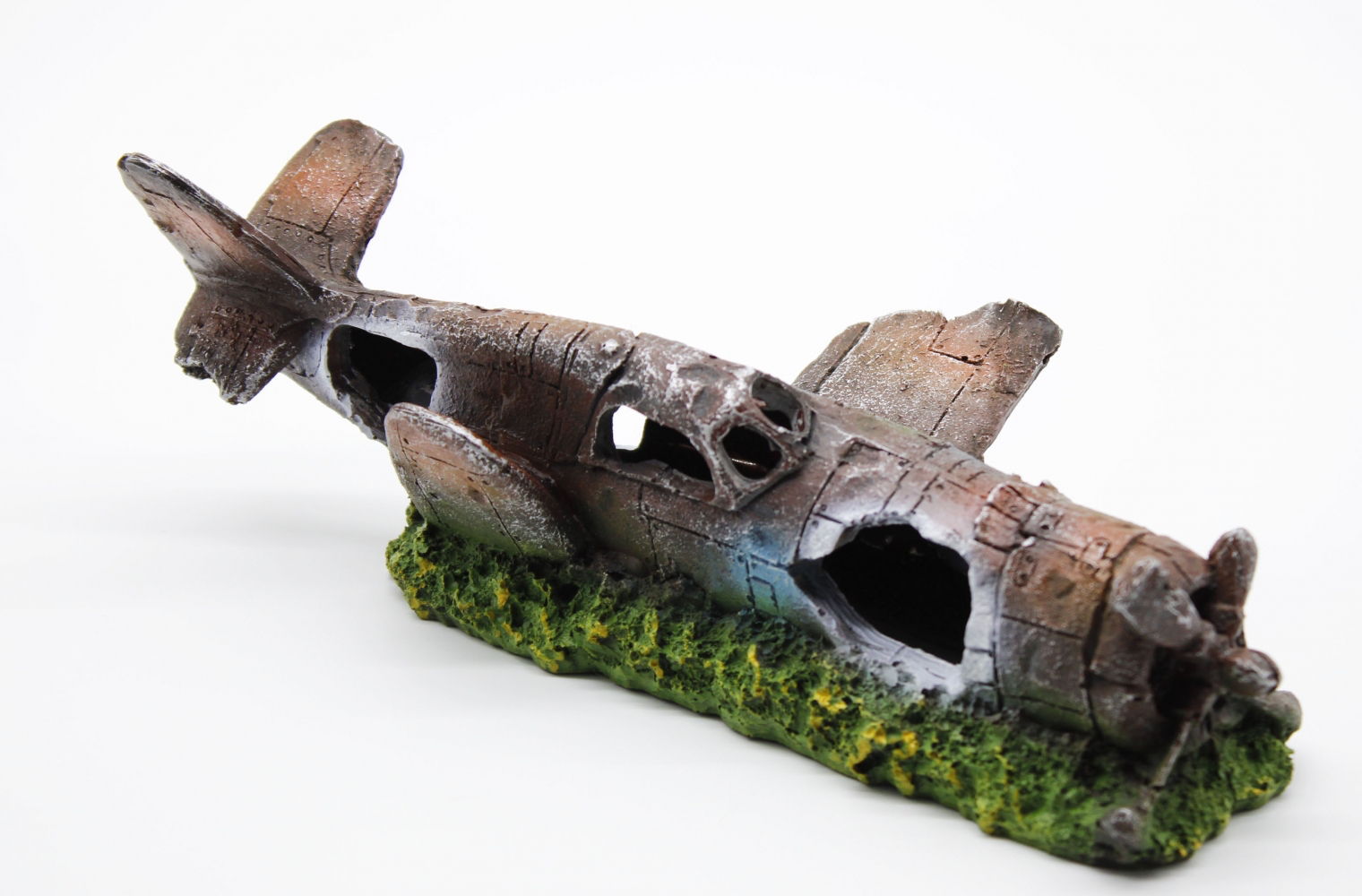 Самолёт 22×8×7 см — декоративный элемент для аквариумов и террариумов, выполненный из качественной керамики. Имеет вид затонувшего разбившегося самолёта, создающего атмосферу приключений и загадочности в аквариуме.