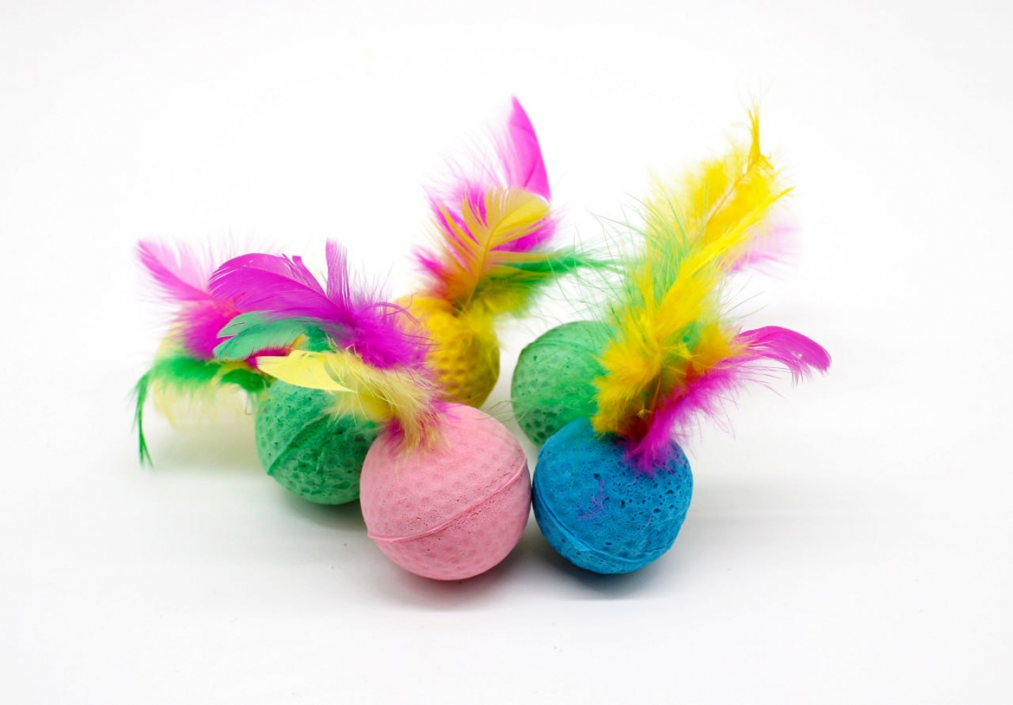 Мягкие и прыгающие мячики из разноцветного поролона для веселого досуга с Вашим любимцем. Одна из самых любимых игрушек у кошек, за которой всегда интересно охотиться, а учитывая то, что мячик бесшумный, такие забавы не принесут владельцу лишних неудобств.