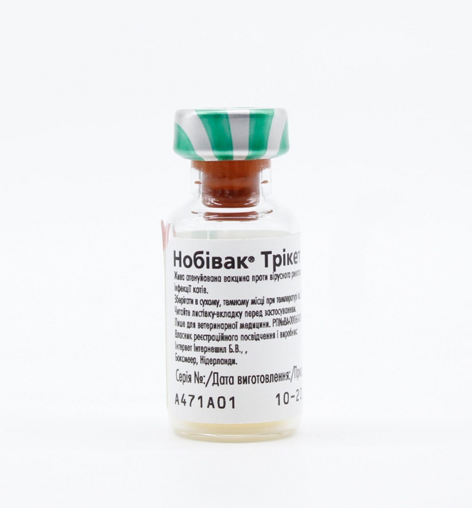 Вакцина Нобивак для котов и кошек Трикет Трио (Nobivac Tricat Trio) - профилактический препарат, который используется для выработки иммунитета против аттенуированных штаммов вируса ринотрахеит, калицивируса, вируса панлейкопении у котов и кошек.