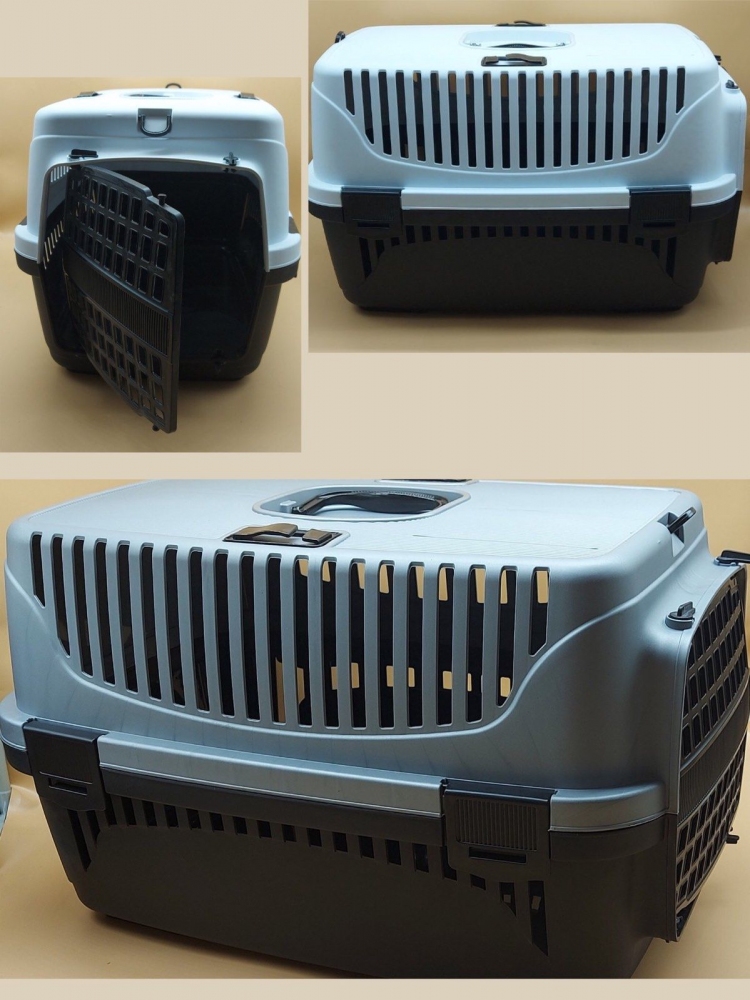 Переноска для животных черно-серо пластик
