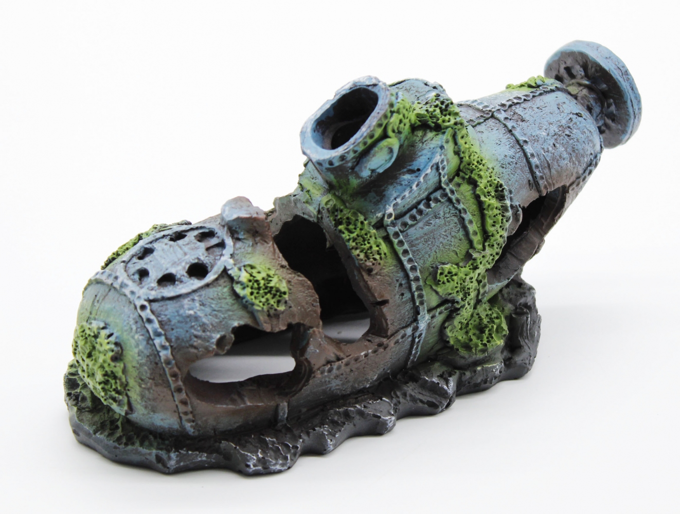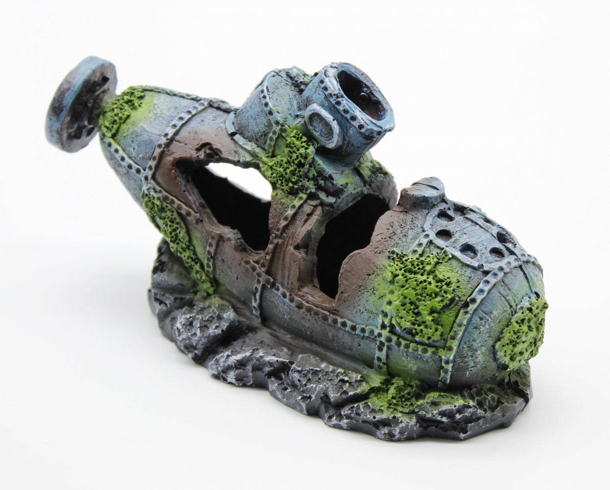 Оригинальный дизайн в форме подводной лодки создаёт эффект глубины и добавляет аквариуму выразительный акцент. Материал легко очищается и сохраняет внешний вид со временем.