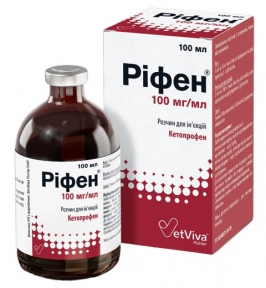 Прозрачный бесцветный раствор. Состав: 1 мл препарата содержит действующее вещество: кетопрофен 100 мг. Вспомогательные вещества: бензиловый спирт, аргинин, лимонная кислота, вода для инъекций. Фармакологические свойства: ATC-vet классификационный код: QМ01АЕ03 Противовоспалительные и противоревматические ветеринарные препараты, нестероидные. Кетопрофен. Кетопрофен – НПВП, обладает жаропонижающими и болеутоляющими свойствами. Фармакологический механизм действия кетопрофена основан на подавлении циклооксигеназ и липоксигеназ, предотвращении образования брадикинина и стабилизации клеточных мембран лизосом, препятствует высвобождению лизосомальных ферментов и предотвращает разрушение ткани. При введении максимальная концентрация кетопрофена в плазме крови наступает в пределах 30-40 минут. Абсолютное бионакопление у крупного рогатого скота и свиней составляет 100%, у лошадей – 70%. Период полувыведения после введения составляет 2-3 часа. Кетопрофен связывается с 95% протеинов плазмы крови и метаболизируется ко вторичному спирту, выводится вместе с мочой через 12 часов. Применение: крупный рогатый скот При заболеваниях, связанных с воспаленным процессом, болью или лихорадкой: - инфекции верхних дыхательных путей; - мазать, отек вымени; - костей и мышечно-скелетные нарушения (хромота, артрит); - травмы; - дистония, для облегчения послеродового периода. Лошади Заболевания костей и костно-мышечной системы, связанные с острой болью и воспалением: - Хромость травматического происхождения; - артроз, артрит – воспаление кости, шпат; - тендинит, бурсит, - подтрахает; - ламинит; – Миозит. Применяют также для устранения воспаления в постхирургический период, симптоматического лечения колик и лихорадки. Свиньи Заболевания, связанные с воспалением, болью или лихорадкой: - мастит-метрит-агалактический синдром; - инфекции дыхательных путей; - Горячко. Дозировка: Крупный рогатый скот: 3 мл препарата на 100 кг массы тела в сутки внутривенно или внутримышечно 3 суток подряд. Лошади: 1 мл препарата на 45 кг массы тела в сутки в течение 3-5 дней. При коликах достаточно одной инъекции, при необходимости повторного введения следует провести осмотр клинического состояния животного врачом ветеринарной медицины. Свиньи: 3 мл препарата на 100 кг массы тела в сутки внутримышечно. Повышенная чувствительность к компонентам. Не применять животным с язвой желудочно-кишечного тракта, геморрагическим диатезом, почечной недостаточностью. Не применять жеребятам в первый месяц жизни. Не применять жребийных кобыл. Не применять внутриартериально. Предостережение: Не смешивать препарат с другими лекарственными средствами. Обеспечить животному свободный доступ к питьевой воде в течение всего периода лечения. Соблюдать правила работы с ветеринарными препаратами и безопасной фиксацией животного. Лицам, имеющим аллергию на препарат, избегать работы с ним. Существует вероятность раздражения слизистой желудка. Внутримышечные инъекции иногда вызывают быстротечное чувство жжения.Повторное применение у свиней может привести к потере аппетита. У лошадей возможны аллергические проявления препарата. Взаимодействие с другими средствами и другими формами взаимодействия: Кетопрофен может усиливать действие антикоагулянтов и ингибиторов агрегации, других нестероидных против