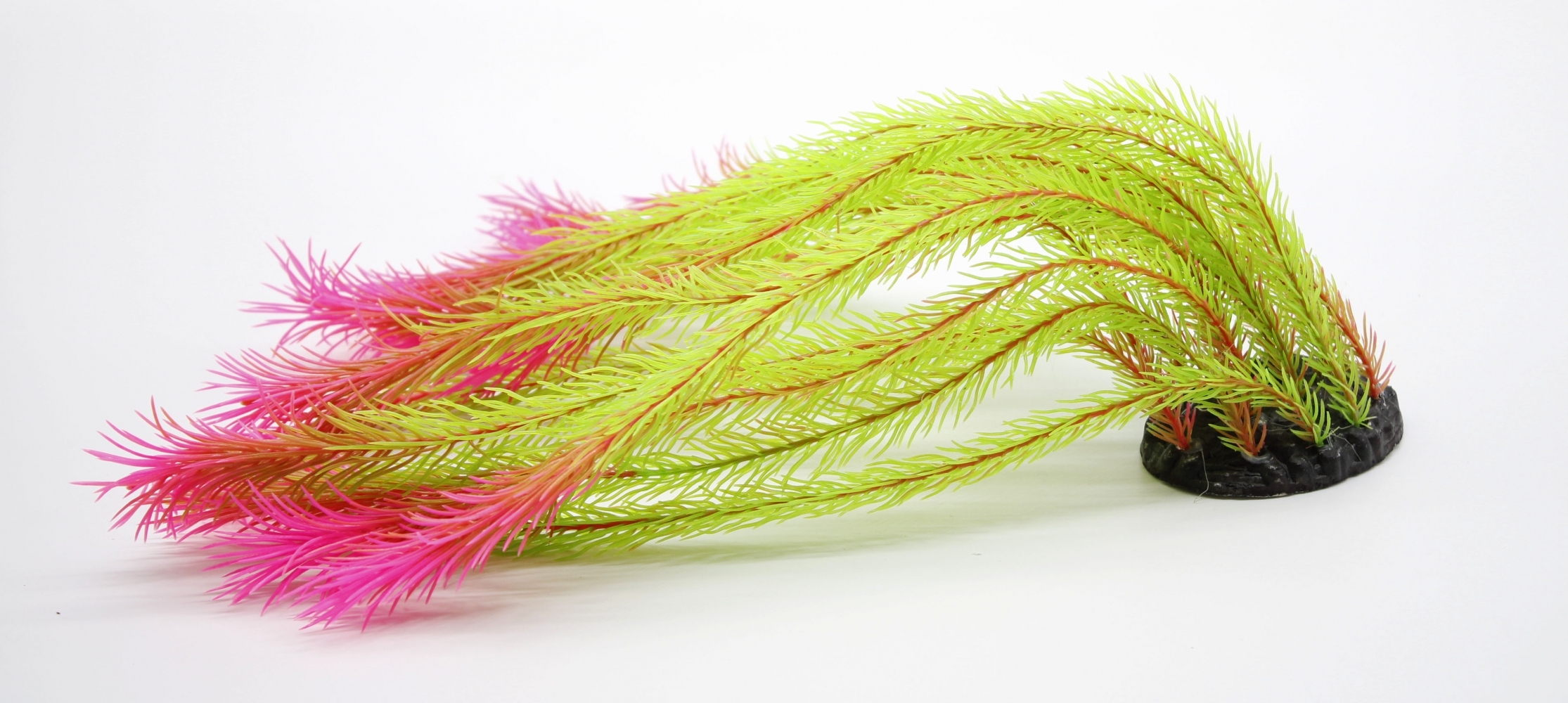 Пластиковые украшения в аквариум – хорошая декорация, которая будет переливаться под водой яркими красками.