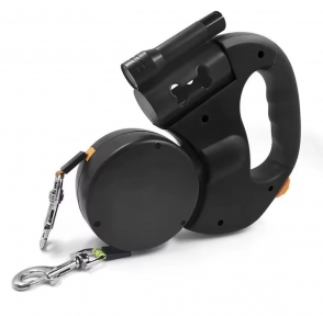 - Поводок оснащен поворотной на 360 градусов рулеткой, фонариком и контейнером для мусорных пакетиков