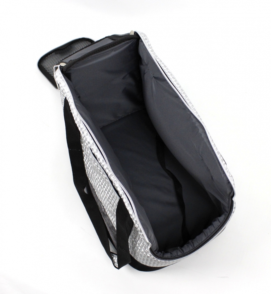 Декоративная плащевка С эффектом Светоотражения. Дно съемное из ткани оксфорд. Сбоку сетка, которая пропускает воздух, и карман для безделушек, длинные ручки. Застежки молнии. Наполнитель поролон.