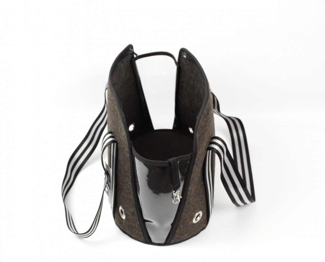 Сумка Мега Наполнитель войлок, основание плащевка, с двух сторон отверстия для циркуляции воздуха, по бокам прозрачные силиконовые вставки, длины ручки со светоотражающими элементами, поводок с карабином, жесткое вынимаемое дно.