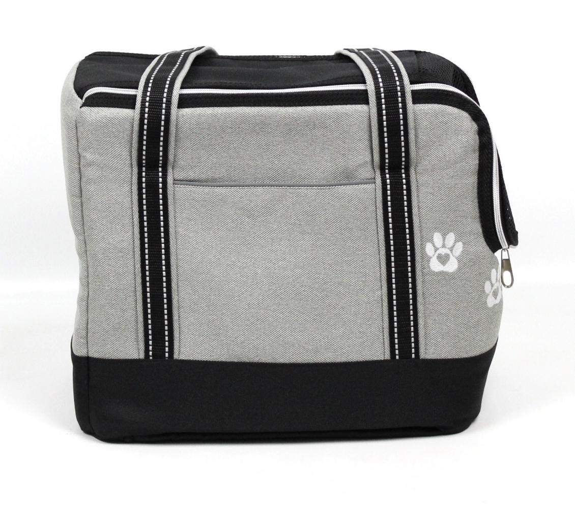 Ткань рогожка+плащевка. Дно съемное, из ткани оксфорд, сбоку сетка, которая пропускает воздух, и карман для чего угодно. Длинные ручки со светоотражающими элементами. Декор вышивки, молнии застежка.
