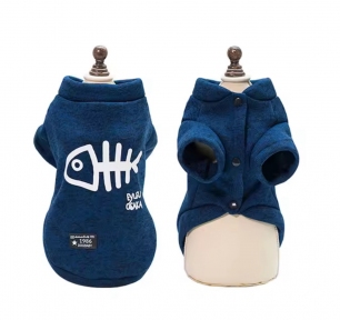 Тёплый и стильный свитер для собак, созданный для комфортных прогулок в прохладную погоду. Модель выполнена в насыщенном синем цвете и украшена оригинальным принтом в виде рыбьего скелета, который придаёт образу питомца яркий и необычный акцент.