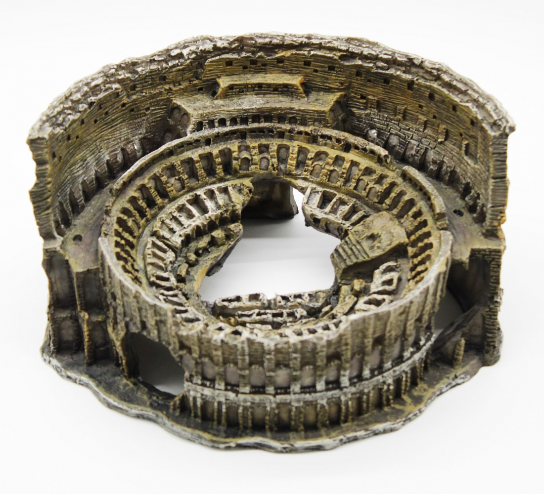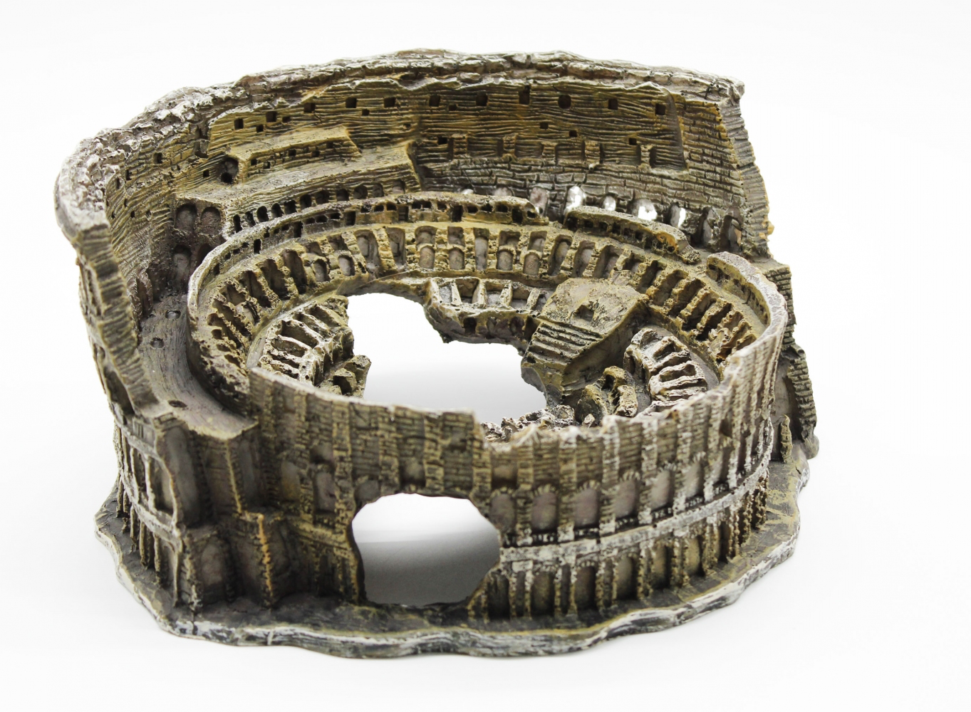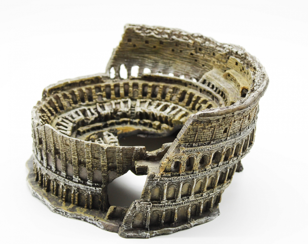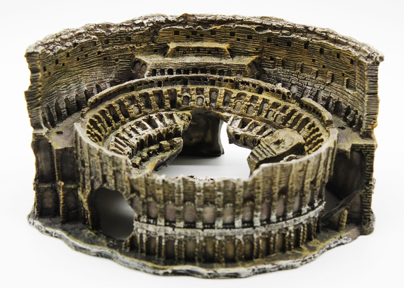 Колізей 23×17×10 см — декоративна прикраса для акваріумів і тераріумів, виготовлена з якісної кераміки. Має вигляд стародавньої споруди з реалістичними деталями та отворами, крізь які можуть пропливати або ховатися рибки та креветки.