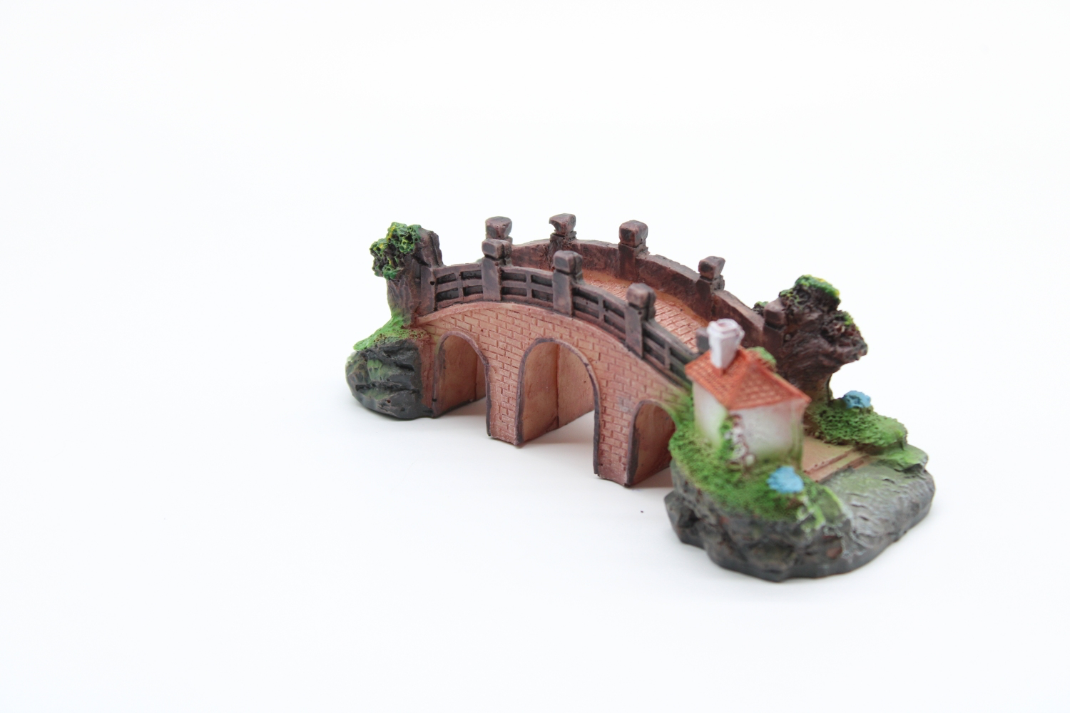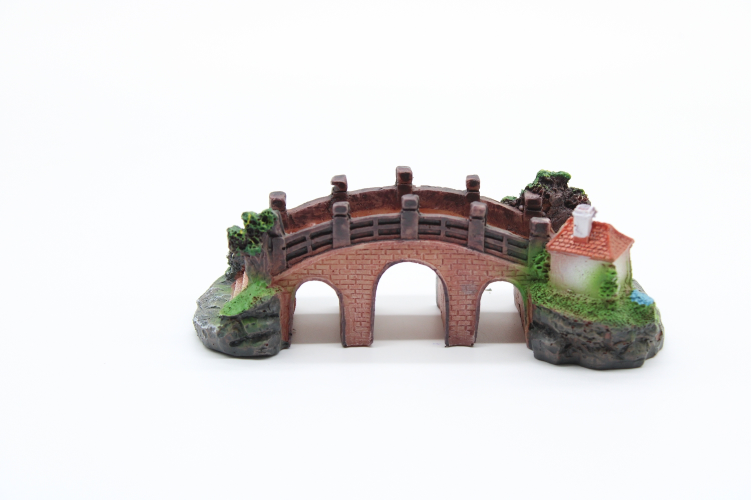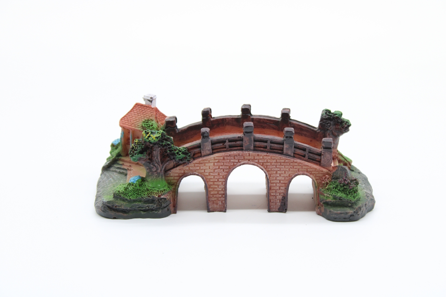 Міст 15×6×6 см — декоративна прикраса для акваріумів і тераріумів, виготовлена з екологічно безпечної кераміки. Має оригінальний дизайн у вигляді мосту з маленьким будиночком, що додає акваріуму затишку та створює атмосферу казкового пейзажу.