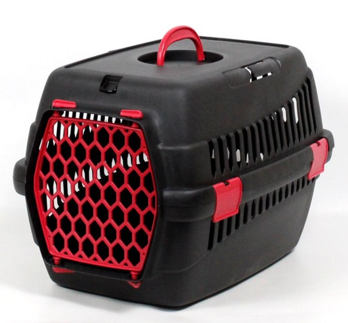 Переноска для тварин чорна пластик червоні двері