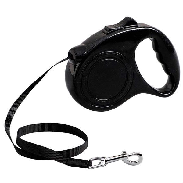 Рулетка кругла для собак на 15кг пластикова ручка стрічка чорна з фіксатором 190