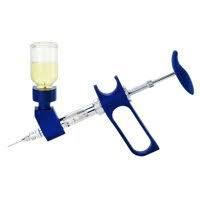 Шприц-автомат використовують для масових вакцинацій коней, свиней, кіз або великої рогатої худоби. Система Luer-Lock забезпечує надійне кріплення голки, яку ви також можете переглянути на нашому сайті. При належному догляді, своєчасному очищенні та стерилізації ін'єктор буде надійним помічником довгий термін.Технологія: латунь з гальванічним покриттям: матеріал для ручки та адаптера, високоміцний пластик канюля Luer-Lock, металічний поршень легкий у роботі тип D 0,5 мл (дозування 0,01-0,5 мл) безперервне та регульоване