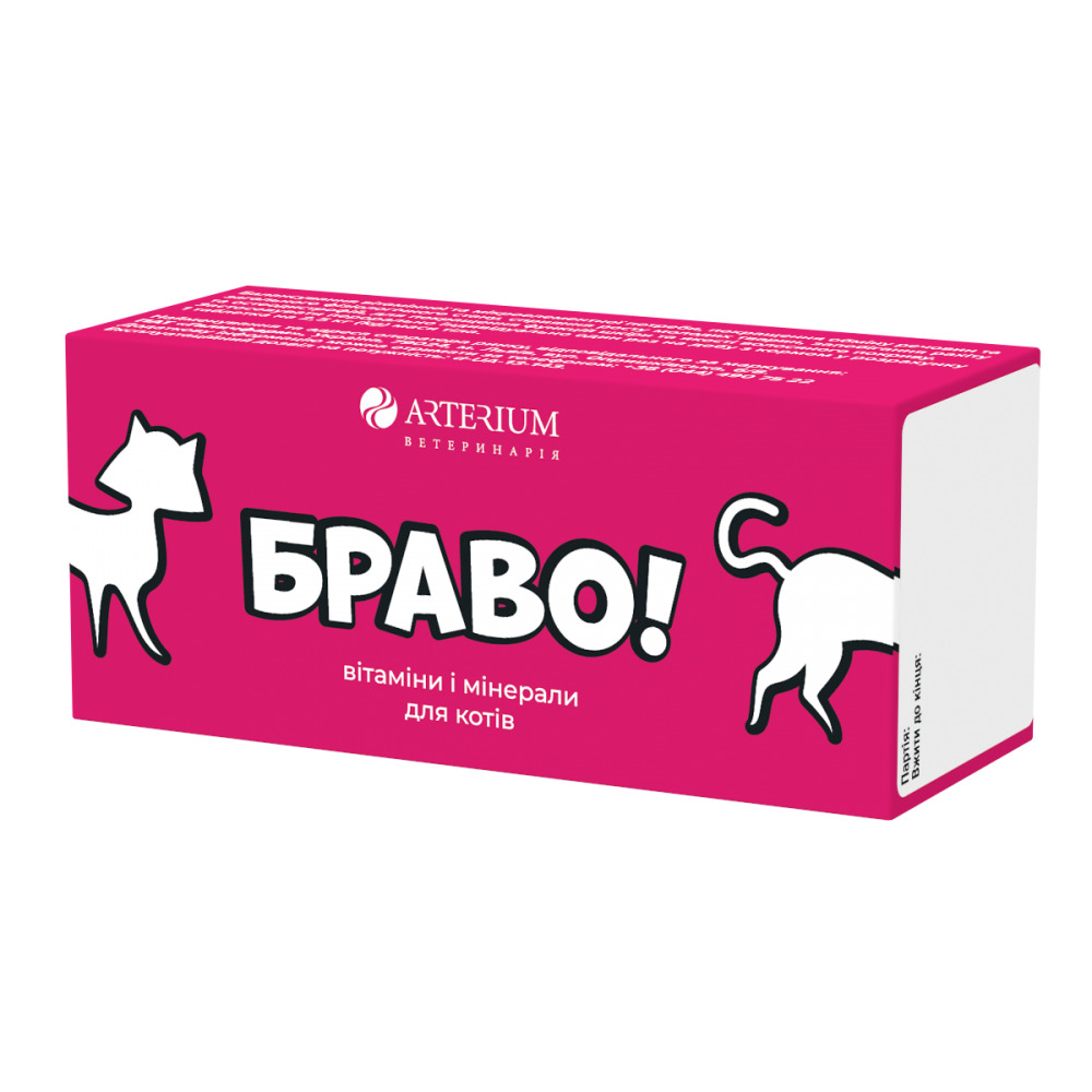 Браво для котів – вітамінно-мінеральний комплекс, дія якого визначається властивостями біологічно активних компонентів. Вони активно впливають на різні функції організму: регулюють енергетичні та обмінні процеси у котів, нормалізують роботу органів і систем, запобігають розвитку патологій, підвищують резистентність до інфекцій, сприяють адаптації до стресу.