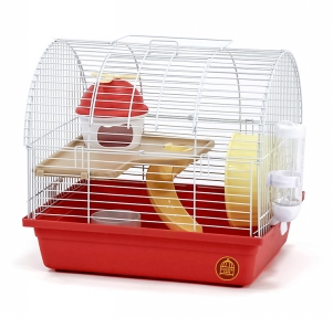 Ця клітка відмінно підходить для різних видів хом'яків, як карликових, так і сирійських, завдяки маленькій відстані між прутами. Практичні і великі двері - лицьова і на даху підкреслюють зручність і оригінальність дизайну цієї моделі. Клітка надійна і практична, виготовлена з високоякісних матеріалів.