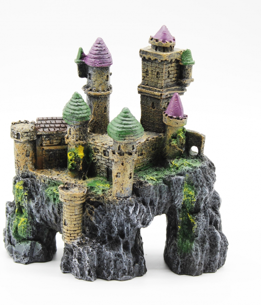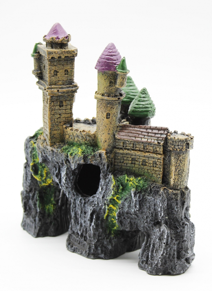 В нижней части замка расположено отверстие, похожее на вход в пещеру; при погружении декорация самостоятельно заполняется водой и не всплывает. Керамика безопасна для обитателей, не изменяет состав воды и легко очищается.